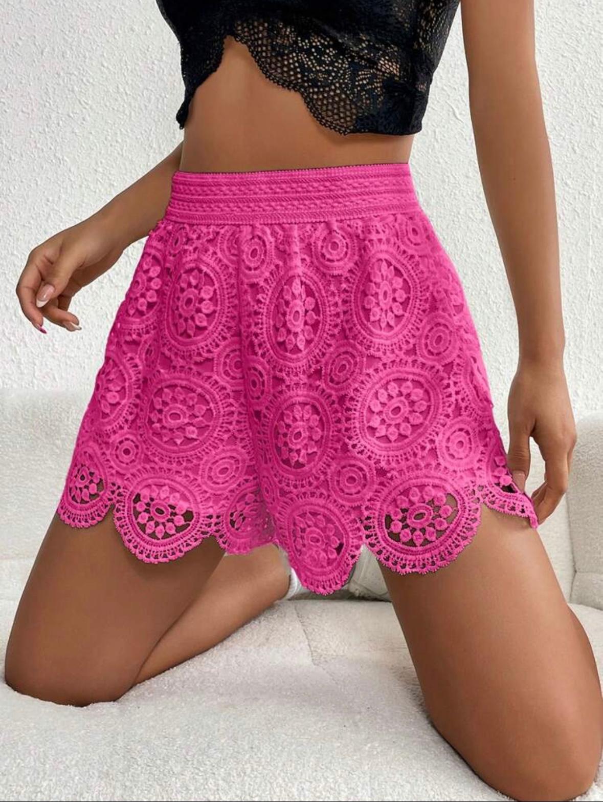 Chiquease Shorts de encaje con cinturilla elástica y tela soluble al agua